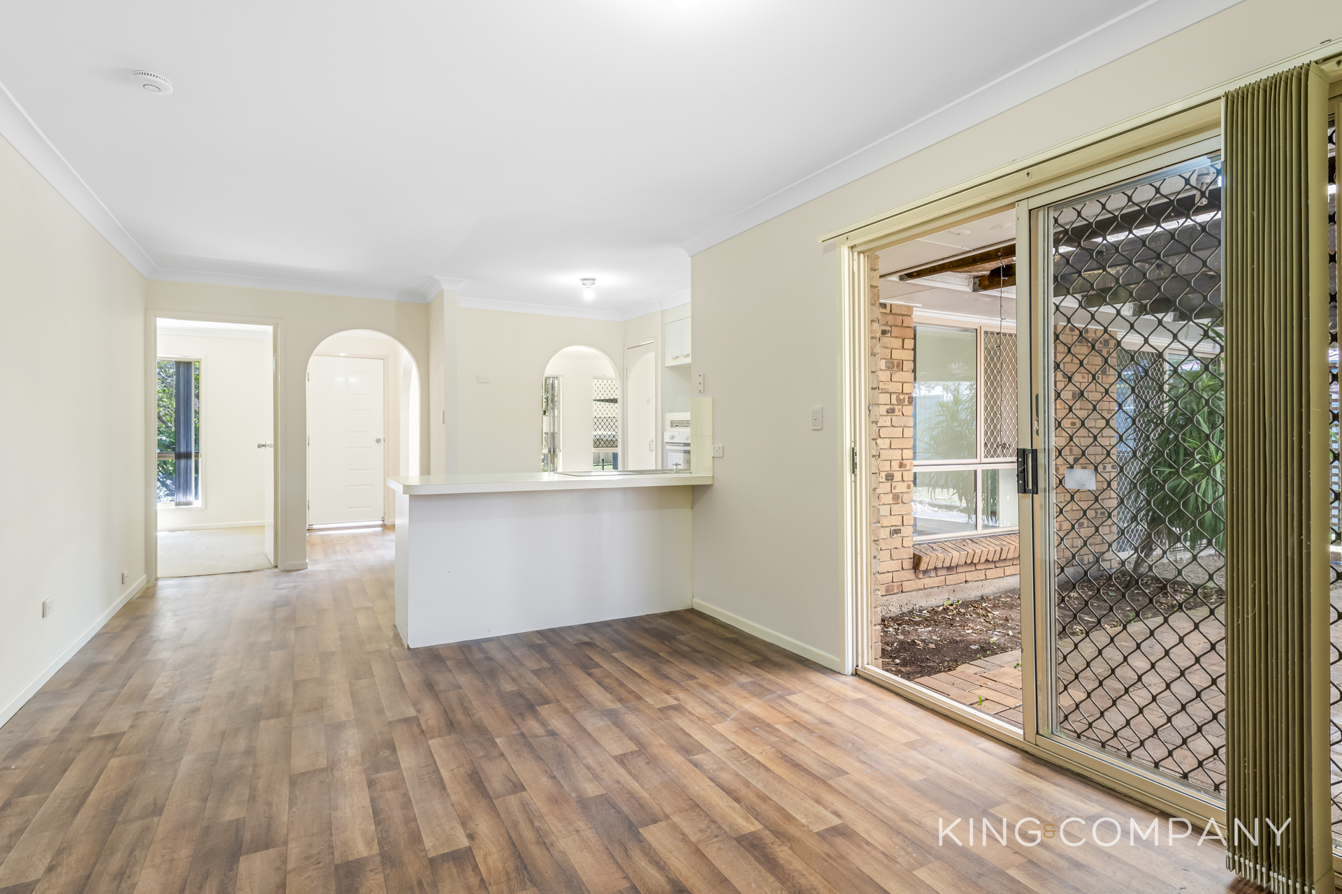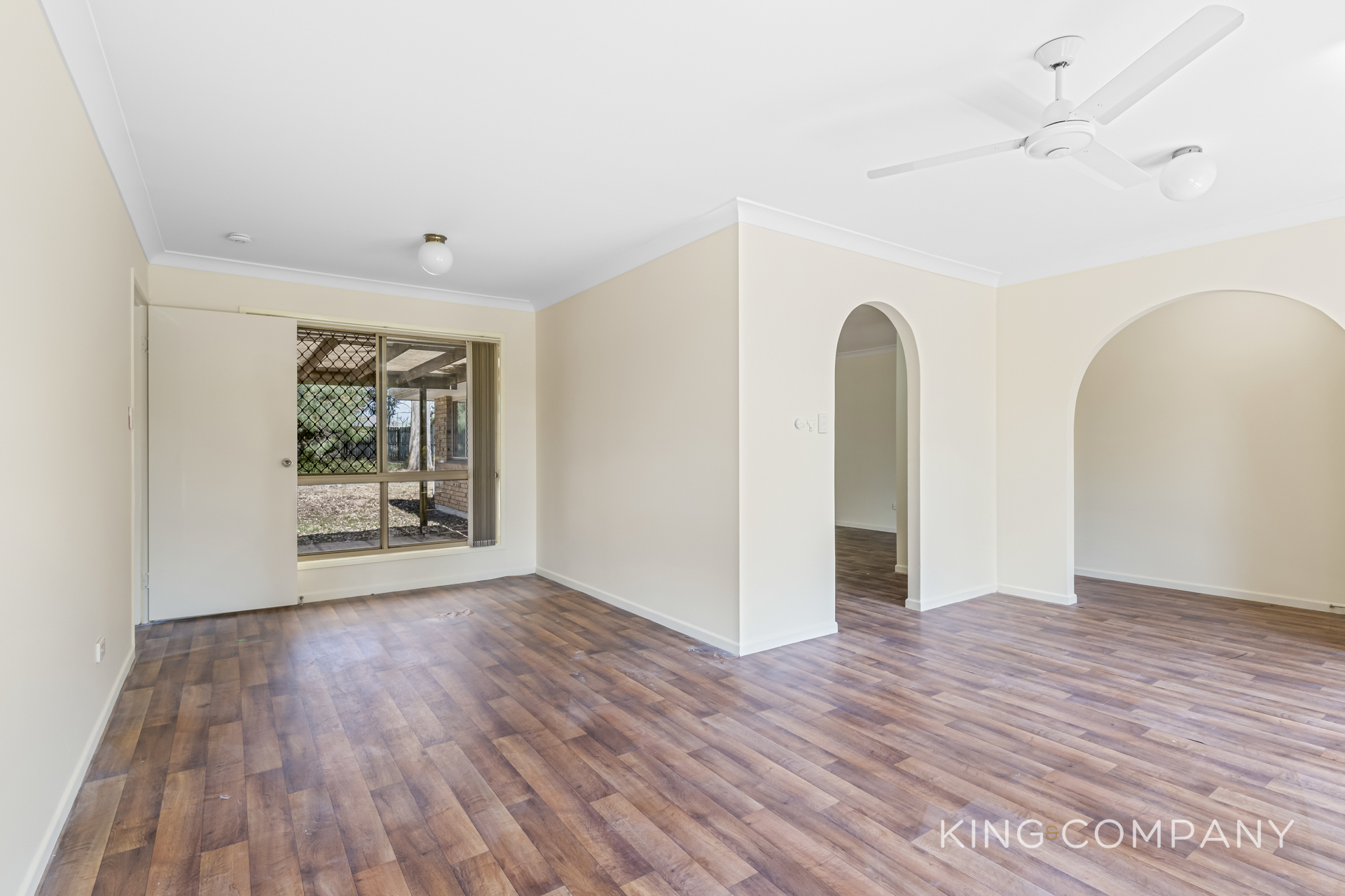 | Adjoining dining space with sliding doors to backyard | Large living area with air-conditioning